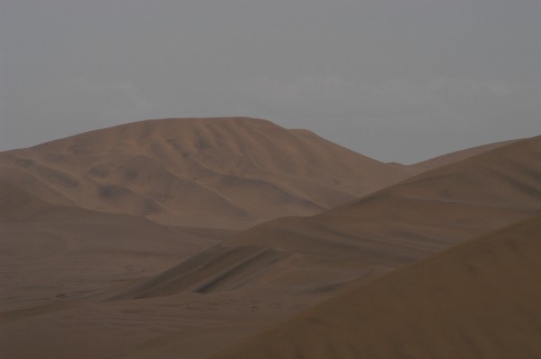 The drive to Dunhuang went pretty quickly. The landscape was mostly barren desert which occasionally gave way to small green oasis areas. There was supposed to be some remnants of the Han Great Wall off to one side but we couldn't clearly tell it from the other lumps of earth on the horizon. A couple of herds of mangy looking camels wandered across the desert scrounging for something to nibble on. We did have a SARS check when entering the town but it just involved the standard forms and getting zapped with the infrared thermometer. We rolled into the oasis town of Dunhaung around 2:00.