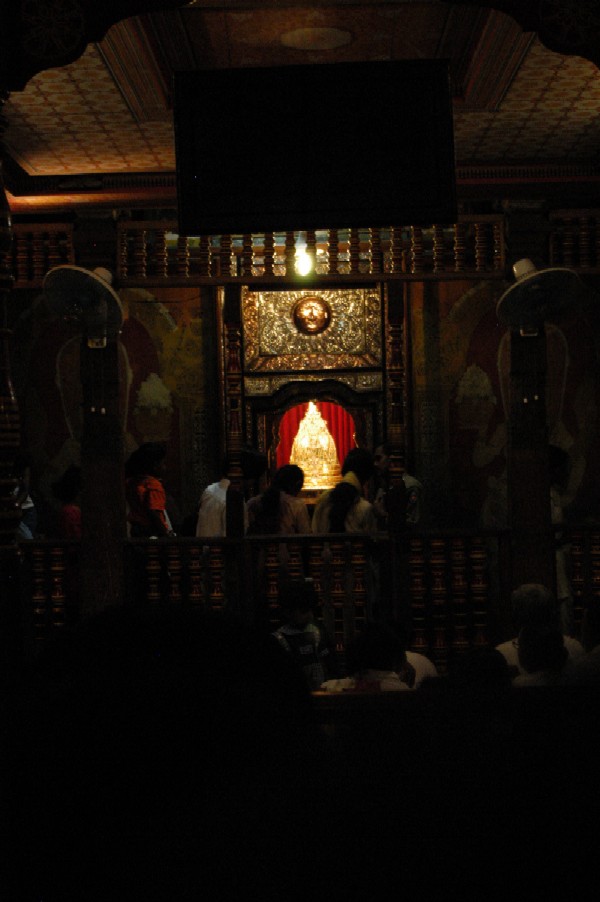 We spent many evenings sitting on that balcony, with others or just by ourselves, watching the sun go down and listening to the chanting emanate from the Temple of the Tooth. Looking out over the rooftops we were entertained by all of the toque macaques romping from building, hassling each other and looking for ways inside so they would thieve. We saw them all over town, actually, and they weren't the least bit afraid of people. Their funny flattop hairdos made them particularly comical. Even inside one of the temples we saw people leaving grain for the monkeys to eat. Then as the sky got dark the sides of the balcony area became a swarm of termites, fluttering around the lights, easy prey for the persistent geckos. We made the mistake one night of leaving the windows in our room open and found about a dozen batting around when we went to go to bed. Some nights it got a bit too buggy but most nights the termites came and either died or eventually went away. The bugfest also attracted our friendly neighborhood bat but his forays weren't limited to the balcony. While we were sitting in the common area the bat would swoop in through the open area at the top of the windows, circle the room, and then go back out. He did it over and over again, occasionally getting a bit low for my comfort but I got used to it. He was so repetitive and methodical that if his interior route hadn't been somewhat irregular, even dipping into the recess near our room, I would have sworn he was just some kind of mechanical rubber bat being flung around on a string. When the bugfest ended our bat went away as well.
